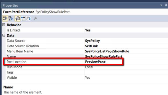 ============== Just discovered that the Policy rules form part is not properly shown in the Policy form. If you want to get it back, create an extension to SysPolicyListPage and change Part location to Auto Once it is done, this part will be visible for all kinds of policies, e.g. Purchasing etc. ![]() Источник: http://alexvoy.blogspot.com/2019/11/...licy-form.html