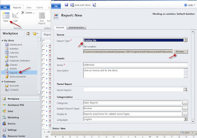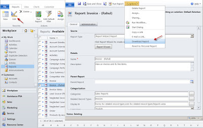 • Now, upload your RDL on the CRM server in the appropriate categories and your report is ready to be displayed in CRM.