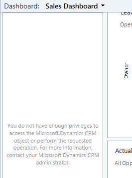 ============== Issue: CRM2011 Dashboard showing "You do not have enough privileges to access the Microsoft Dynamics CRM object or perform the requested operation. For more information contact your Microsoft Dynamics CRM administrator"